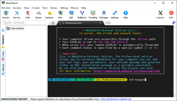 Una vez instalado, abrir un terminal y escribir ssh-keygen para generar una llave no hace falta que ingreses clave, solo enter